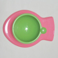 カラフルな魚型のスタンドにのったボウルは、簡単に外せます。食器洗い機の中でかさばらず、電子レンジでご飯を温めることもできます。